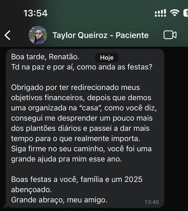 Hoje, já ajudei centenas de médicos a saírem do ciclo exaustivo de plantões e a construírem um futuro financeiro sólido.